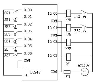 ( 1) 輸入元件的接線方式。所有開關、按鈕均采用常開觸點,這樣做的好處是可以避免 PLC 的輸入電路長期通電增加能耗,縮短電氣設備的使用壽命。