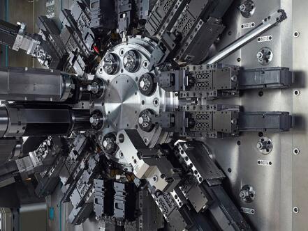 因代克斯貿易(上海)有限公司INDEXMS22-8多軸數控多功能機床。主軸通孔直徑Φ22/Φ24mm,最大轉速10000r/min,最大功率15kW,最多16個滑臺。帶有滑動導軌的高動態徑向滑塊(X 軸),帶有靜壓軸承支撐,Z軸不易磨損。具有C軸的同步副主軸,旋轉臂通過三段式端面齒配合鎖定在其工作位置,從而提供最大的剛性,每個同步副主軸多達6個用于背面加工的刀具。配置8根切削主軸,最多兩個同步副主軸,以及多達16個刀架,它們可以自由配置為十字X/Y/Z 滑臺或鏜孔Z向滑臺,從而實現高生產率。INDEX快速裝夾系統,獲得專利的W齒和符合人體工程學的開放式工作區可最大程度地縮短調試時間。結合CNC柔性技術和INDEX高效多軸技術,可以廣泛用于各行業的精密零部件大批量生產。緊湊的主軸輪轂通過使用端面齒匹配確保每個位置的最大精度。核心部件由集成在主軸輪轂中的八個液冷電主軸組成。無級變速范圍、高功率、緊湊型設計、低維護成本以及最新的同步驅動技術。