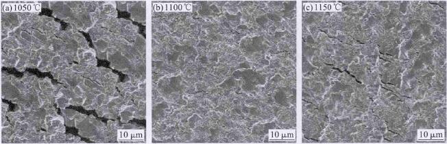 從圖 3 可看出,隨始鍛溫度從 1050℃增加至 1150 ℃,新型汽車曲軸的主裂紋級別、網狀裂紋級別和熱疲勞裂紋級別均表現出先減小后增大的變化趨勢。 當始鍛溫度為 1100℃時,新型汽車曲軸的主裂紋級別、 網狀裂紋級別和熱疲勞裂紋級別均最小,分別為 1、2、3 級。