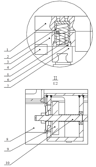 1.移動臺體 2.連接套 3.浮動墊板 4.齒條 5.彈簧 6.彈簧