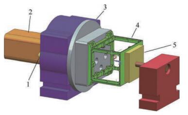 1- 彈性定位銷釘 2- 氣缸 3-工裝固定座 4- 產(chǎn)品 5- 防振裝置
