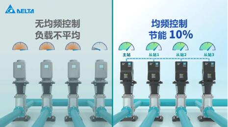 臺(tái)達(dá)MPD,可根據(jù)供水需求及時(shí)調(diào)整頻率和水泵負(fù)載。讓各臺(tái)設(shè)備始終處于最佳效率狀態(tài)中運(yùn)行。