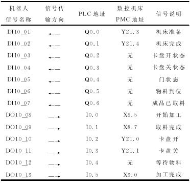 表1 數控加工中心與工業機器人聯絡信號定義