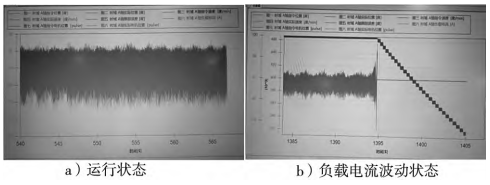 通過華中數控的專業軟件對主軸負載、主軸速度等重要指標進行監控(圖 4a)),發現主軸旋轉時空載電流值波動較大,正常時應在縱坐標軸 0 附近,且機床出現報警的同時,發現主軸負載電流出現非常大的波動(圖 4b)),導致報警停機。為進一步確定故障點,使用“機電分離法”,即把主軸電機和機械部分脫開,軟件監控情況與“機電分離”之前一致,基本排除了機械傳動部分的故障。故障點很可能在伺服驅動模塊上,更換該模塊后故障徹底排除,機床恢復正常運行。
